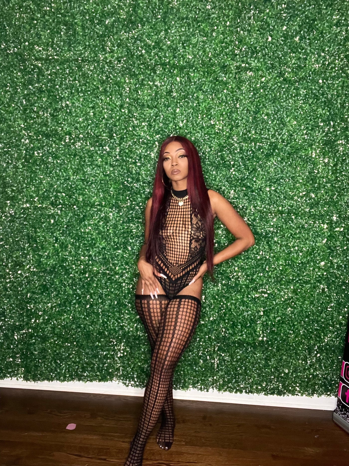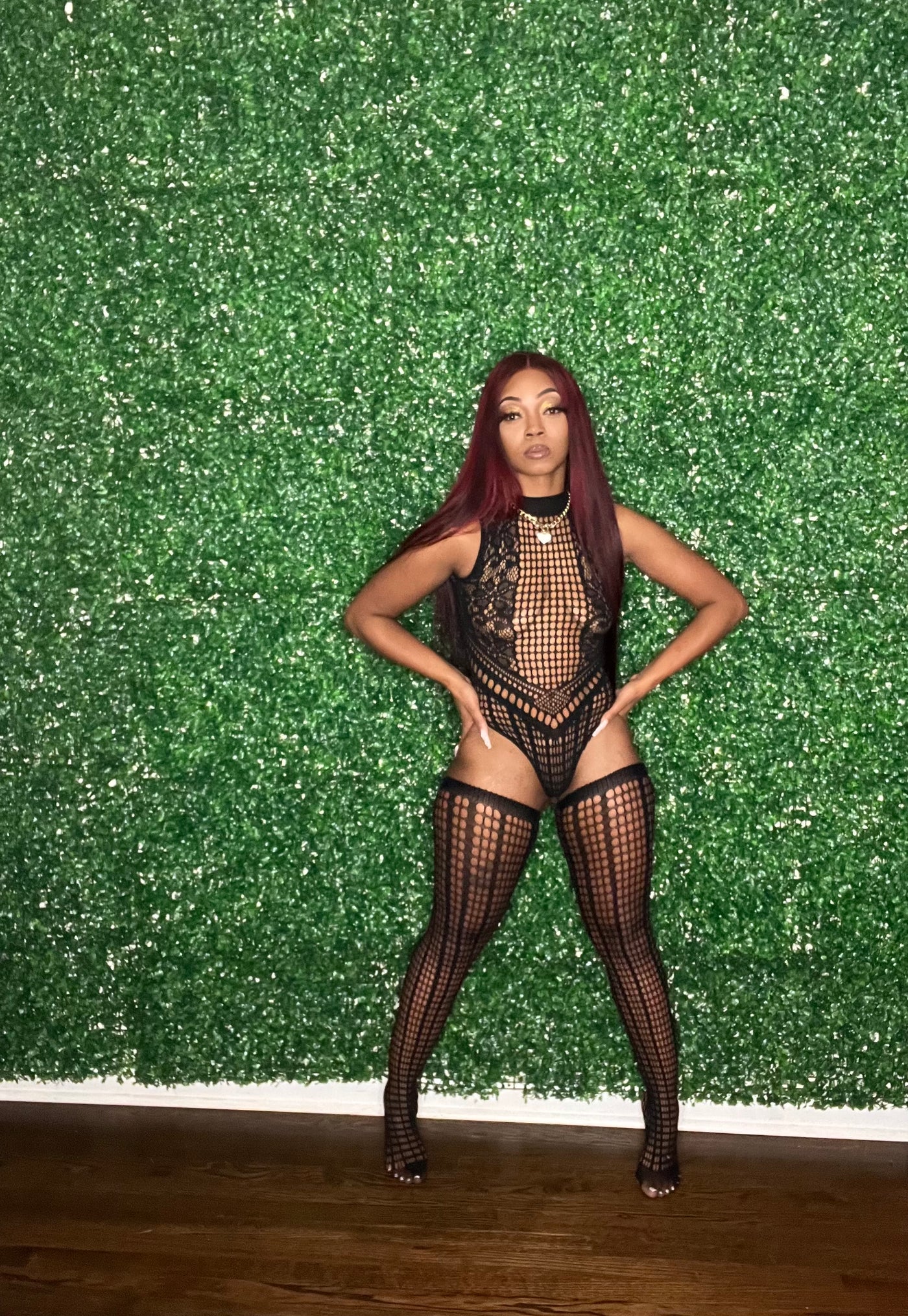 This two piece lingerie fishnet set is black and see through all around while providing ultimate comfort as well