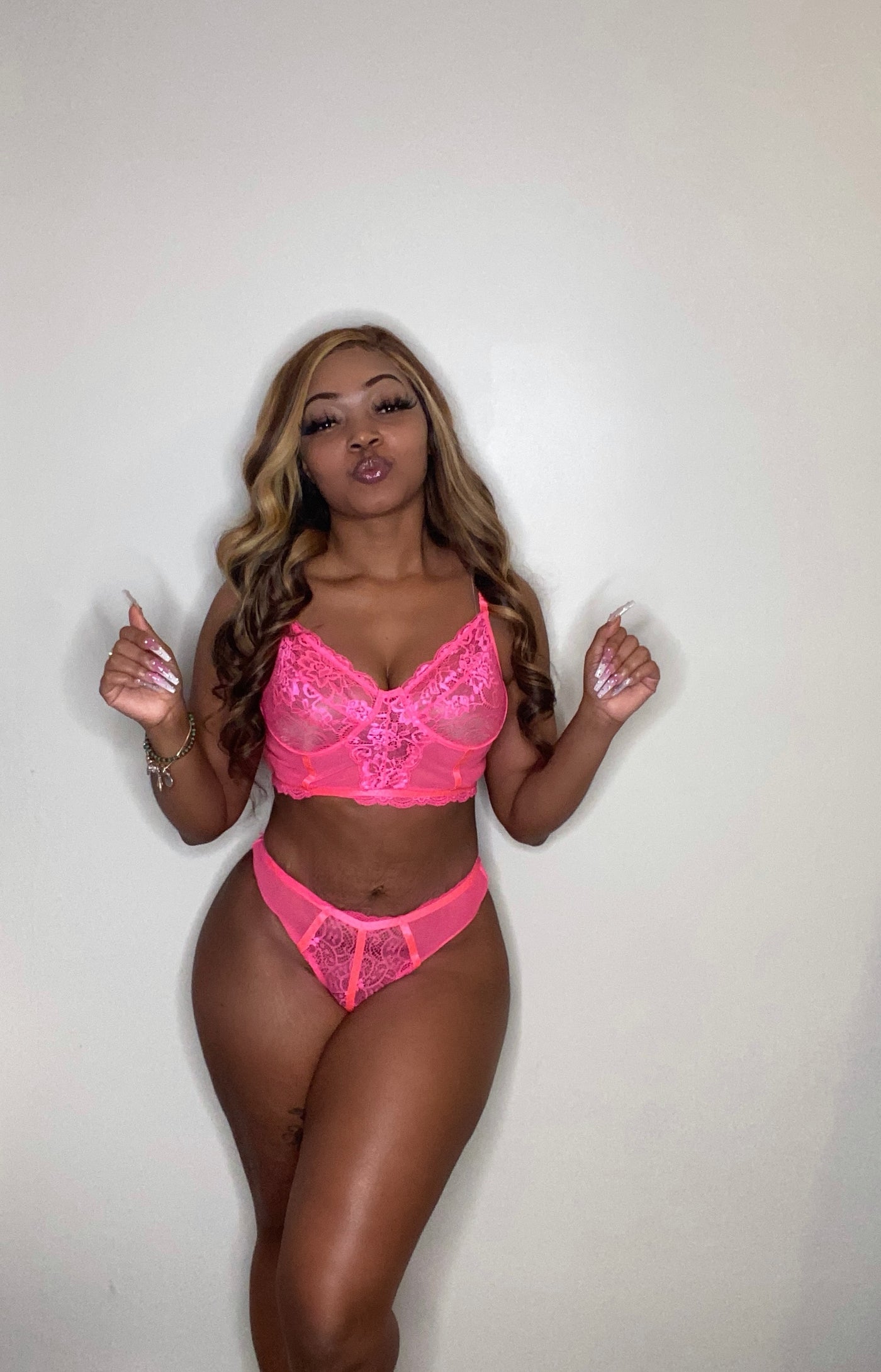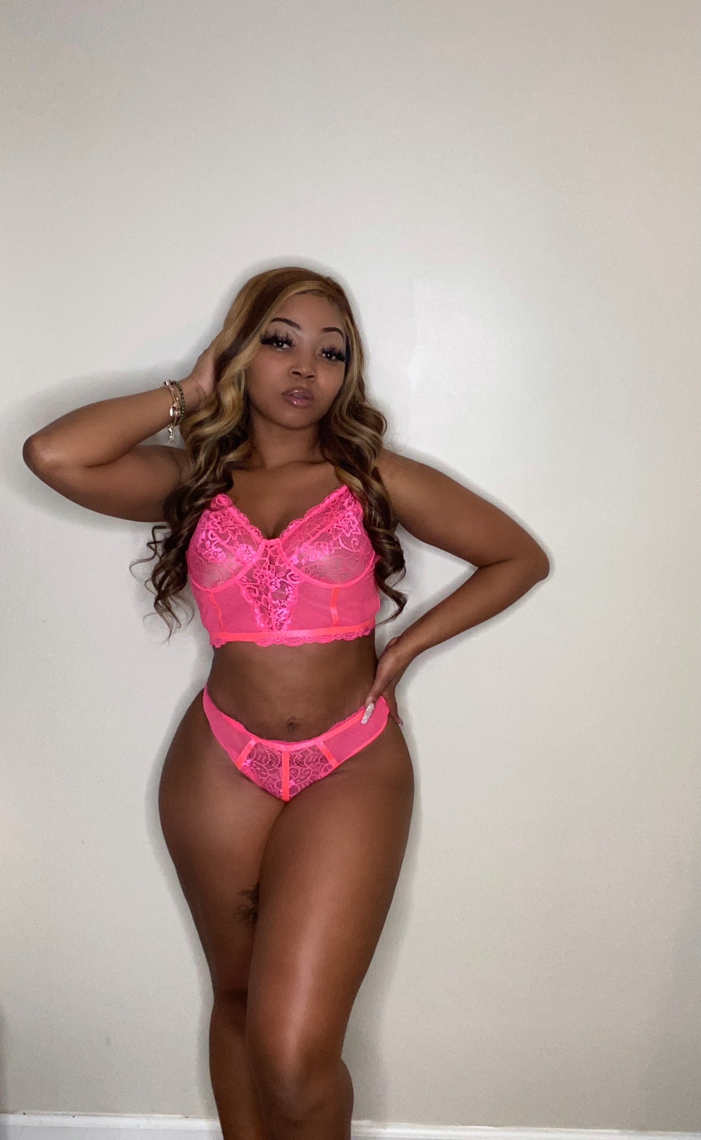 Two piece set includes longline bralette and thong
