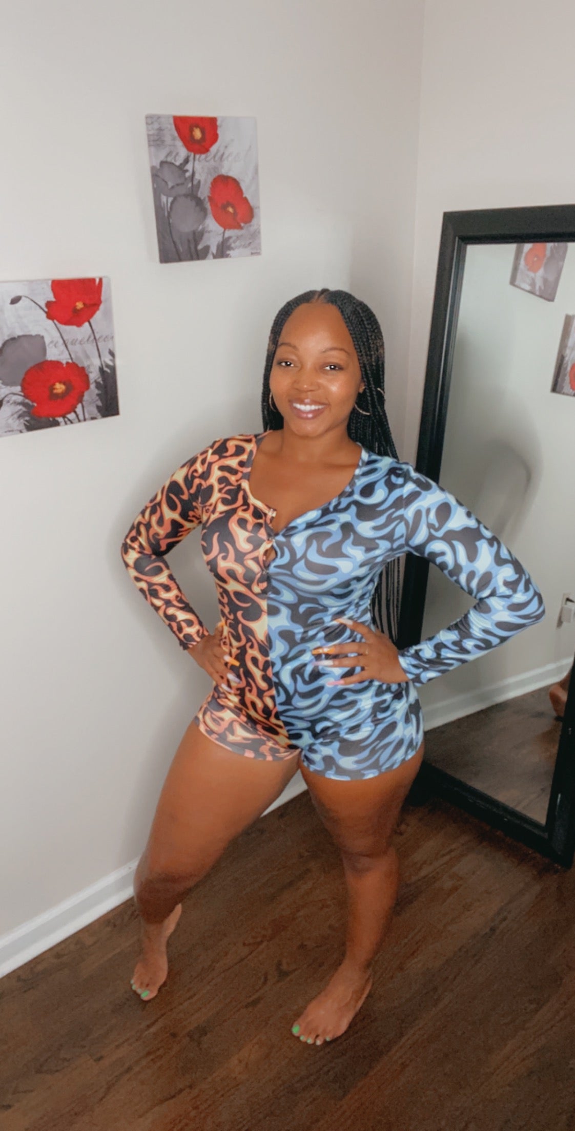 Long sleeve Fire flame contrast color printing onesie